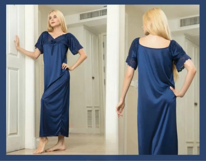 This elegant nightdress is designed with a relaxed fit for easy movement and ultimate nighttime comfort. The smooth finish and graceful design make it perfect for sleep, relaxation, or cozy evenings at home.