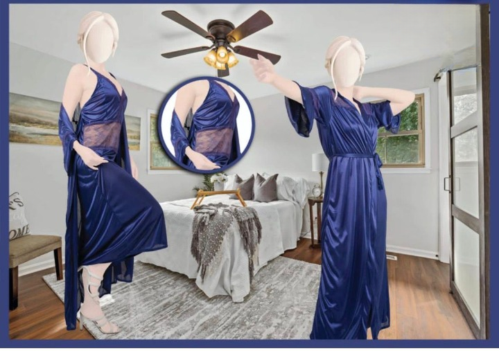 The set includes a stylish inner slip and a matching satin robe, designed to keep you comfortable and confident. Its sleek shine, gentle drape, and lightweight feel make it perfect for cozy nights, morning routines, or simply relaxing at home.