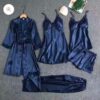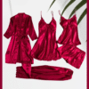 5-Piece Luxury Silky Nightwear & Robe Set with Lace Details