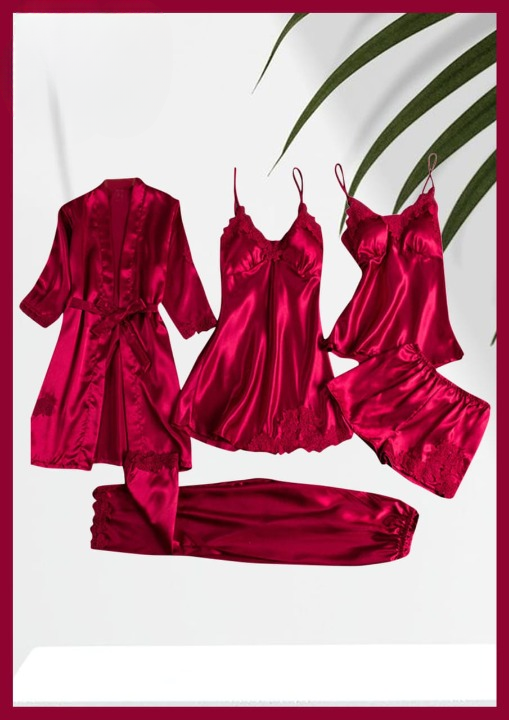 Be the first to review “5-Piece Luxury Silky Nightwear & Robe Set with Lace Details”