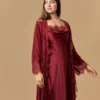 This Gorgeous Nightwear Set Features a Romantic And Soft Chiffon Robe Adorned With Chatilly Lace While The Long Silky Satin Nightdress Comes With a Halter Neckline Also Adorned With Chantilly Lace And A Sexy Touch Of Buttons On The Sideline.