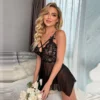 Unleash your inner siren in the Spark Deep Neck Transparent Short Lingerie This captivating set features alluring lace details that hug your curves in all the right places. The delicate bow accents add a touch of playful femininity, while the comfortable and flattering fit ensures you feel confident and beautiful all night long.